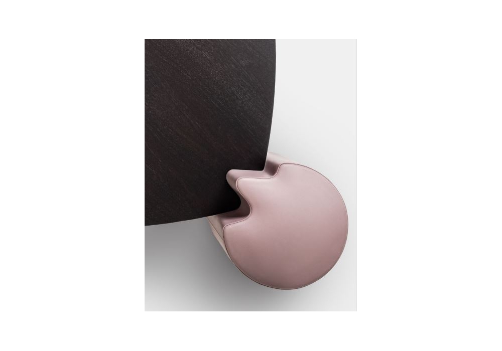 Woody conçu et produit par Giorgetti est un pouf en polyuréthane avec revêtement en résine collée de 3 mm, avec base interne en contreplaqué. Le revêtement, en tissu ou en cuir, présente une double couture sur le côté. Le pouf a une base façonnée en tôle peinte en étain (fin. 5L).