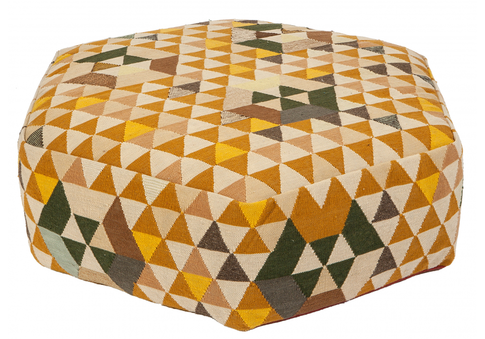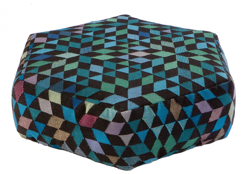 Triangles conçu par Bertjan Pot pour Golran est un pouf noué main selon la technique KILIM. Il est composé de fibres de laine, de soie et de cactus.