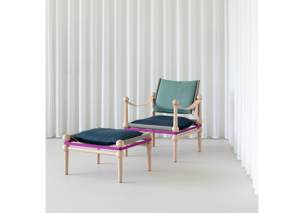 Twain conçu par Konstantin Grcic pour Magis est un pouf avec structure en hêtre massif, assise en tissu. Disponible en différentes finitions.