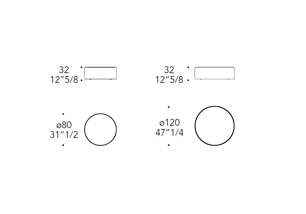 | Dimensions | Ø 80 x H 32 cm; Ø 120 x H 32 cm. |
