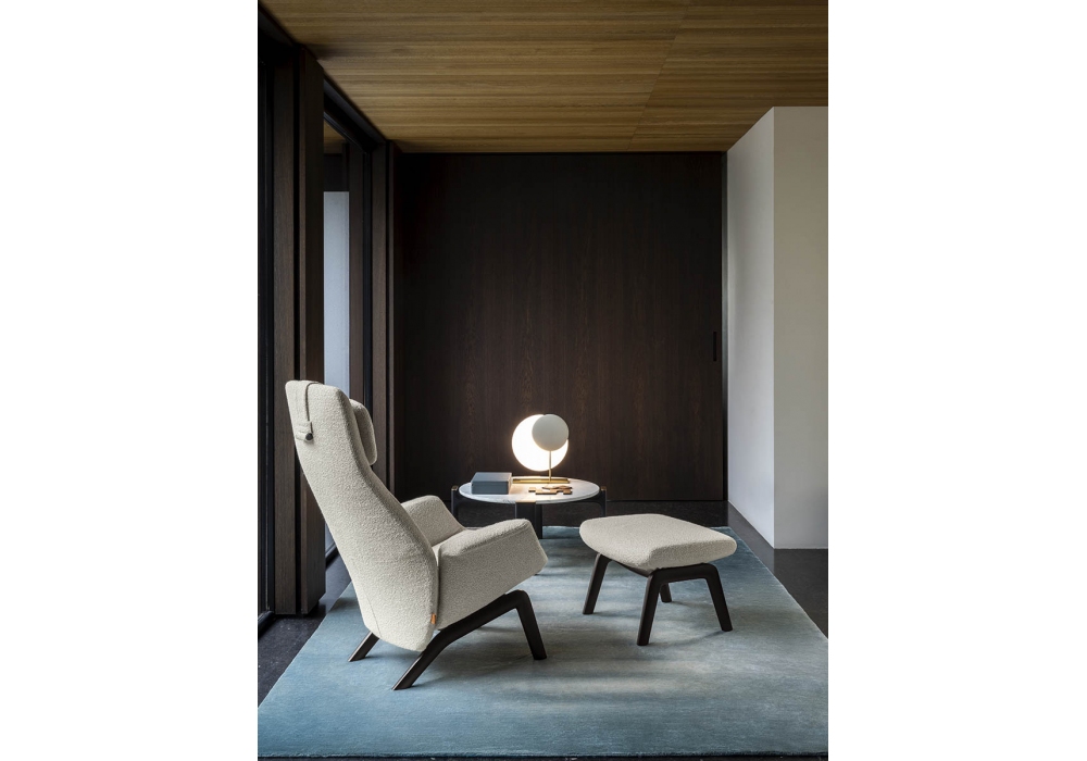 Downtown Lounge conçu par Jean Marie Massaud pour Poltrona Frau est un pouf doté d'une structure en mousse de polyuréthane moulée et d'inserts métalliques, rembourrée de ouate de polyester pour un confort moelleux et accueillant. Disponible exclusivement avec un piètement fixe, en frêne massif ou en aluminium. Des embouts en plastique noir protègent le sol. Revêtement en cuir Pelle Frau® ou en tissu.
