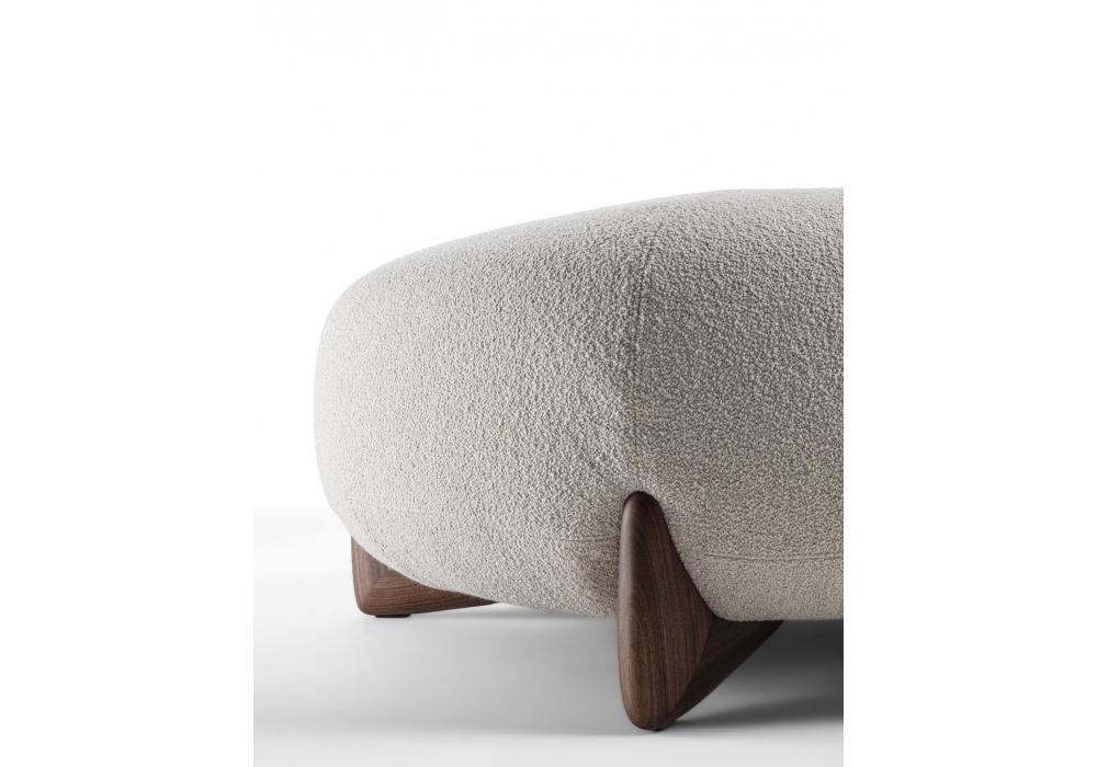 Softbay conçu par Giuseppe Viganò pour Porada est un pouf doté d'une structure en noyer canaletta ou en frêne massif et d'un revêtement déhoussable en différents tissus. Un bouton central relie les coutures.
