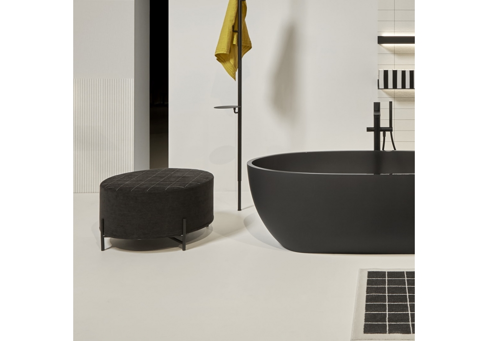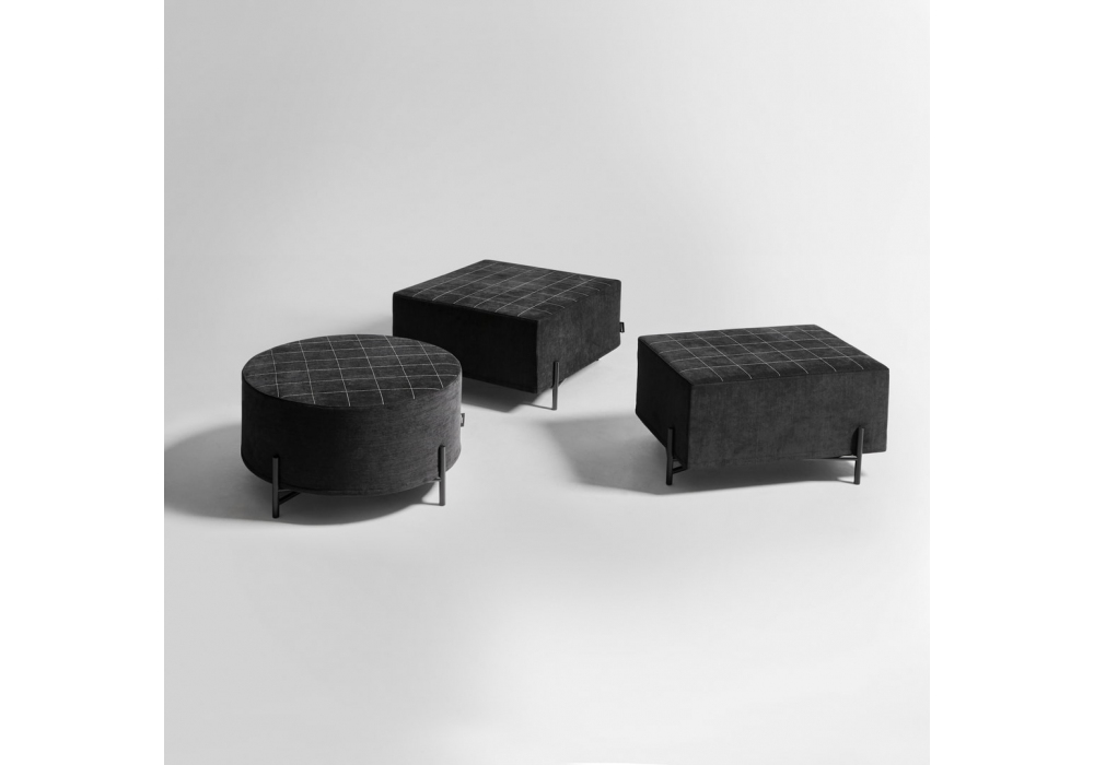 Paesaggi Sospesi conçu par Gumdesign pour Antonio Lupi est un pouf dont la structure est en contreplaqué CARB de différentes épaisseurs, avec un remplissage en polystyrène. Le rembourrage est en mousse de polyuréthane de différentes densités, recouvert de fibres de polyester. La base est en métal peint et le revêtement est en tissu.