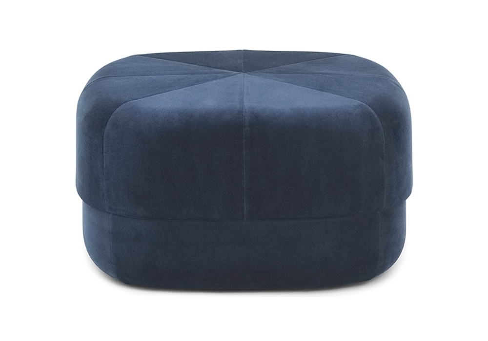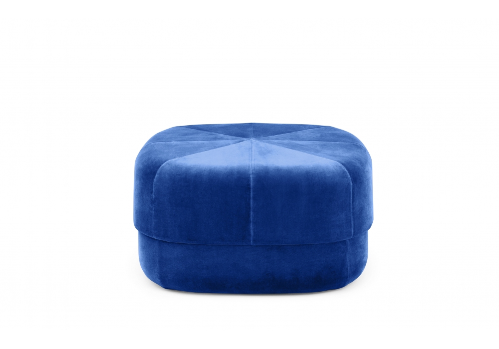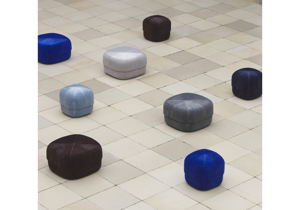 Circus Pouf, conçu par Simon Legald pour Normann Copenhagen est un pouf, structuré par la combinaison de mousse et de bois, recouvert de différentes finitions en velours.