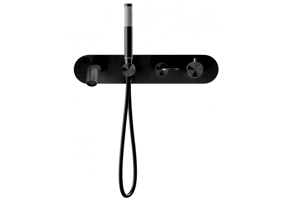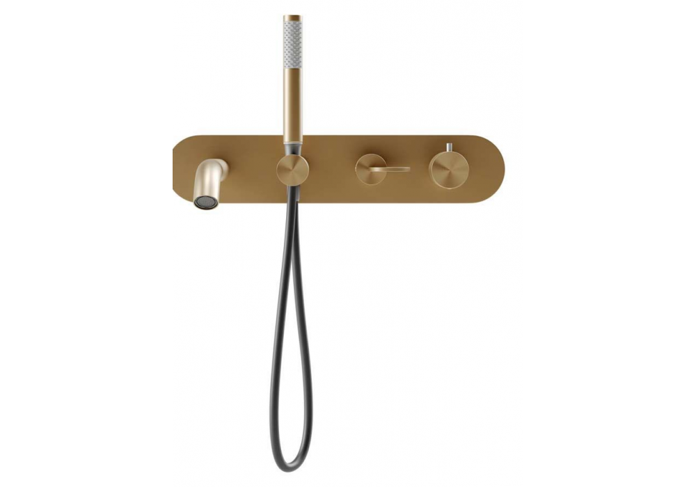 Limón conçu par Patricia Urquiola pour Agape est un robinet de baignoire mural en laiton en différentes finitions. Il est composé d'un inverseur et d'un support de douchette.