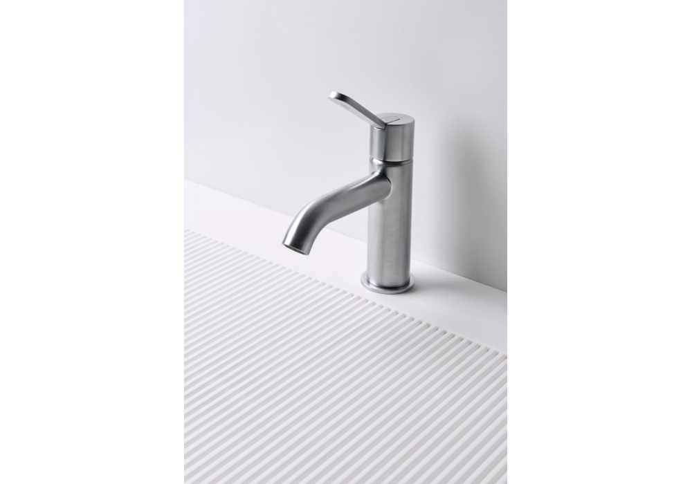 Fez 2 conçu par Benedini Associati pour Agape est un robinet monotrou mitigeur en laiton en différentes finitions. Il n'y a pas de contrôle des déchets. Complet avec tuyau d'alimentation.