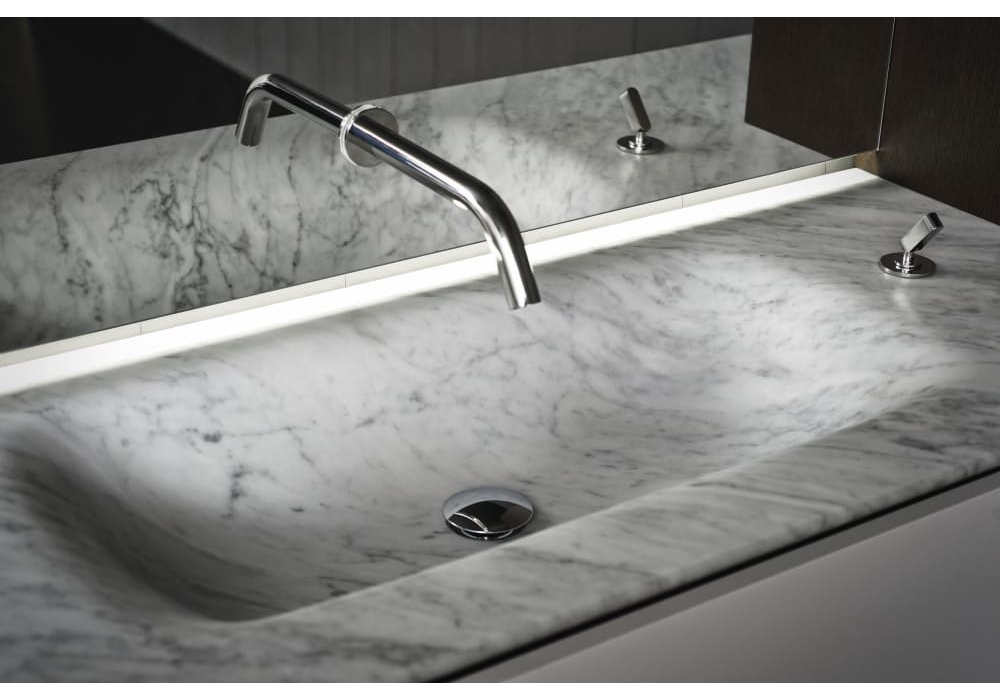 Square, conçu par Benedini Associati pour Agape, est un robinet mural en acier inoxydable AISI316L poli ou mat. Il est composé d'un bec mural et d'un mitigeur joystick à positionner sur le dessus. Câbles électriques flexibles inclus. Le bec peut également être fixé en présence d'un miroir (qui doit être percé de manière appropriée).