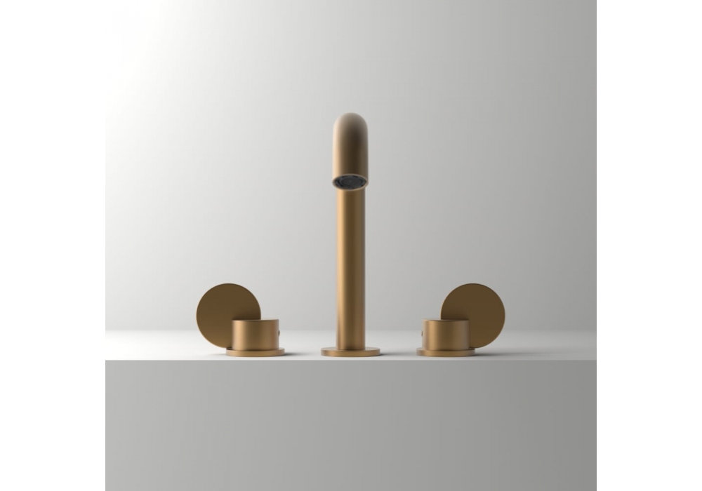 Limón conçu par Patricia Urquiola pour Agape est un robinet à trois trous en laiton en différentes finitions. Il est équipé d'une double commande et de flexibles d'alimentation d'évier.