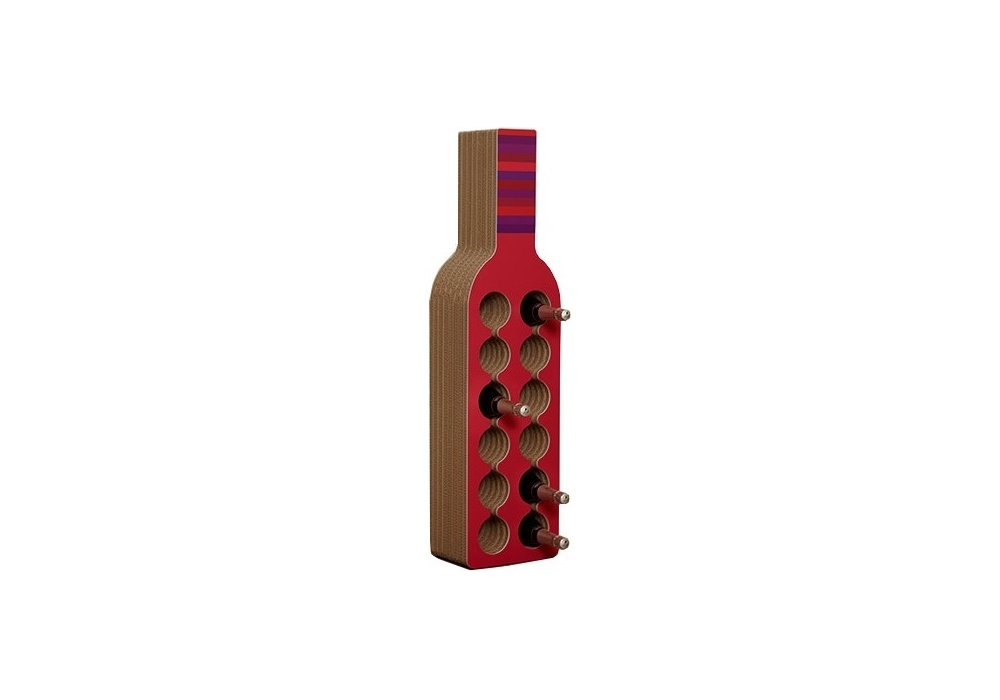 Mini-Bodega designed by Kubedesign is a bottle-shaped wine rack with 12 storage spaces and a shock-proof finish. Available in 3 colours with a striped design.