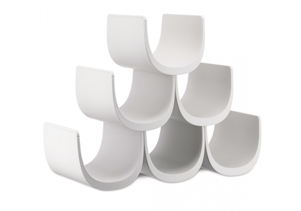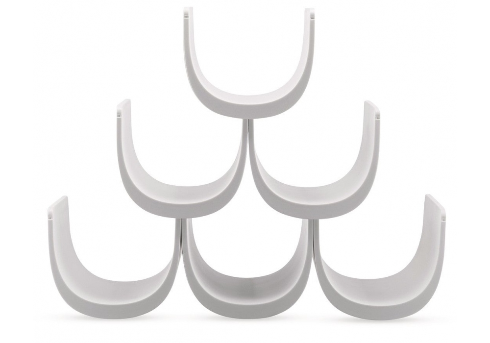 Noè conçu par Giulio Iacchetti pour Alessi est un porte-bouteilles modulaire (six bouteilles) en résine thermoplastique, disponible en deux couleurs.