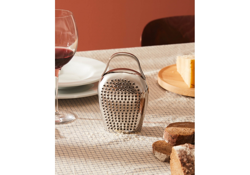 Cheese Please conçue par Lorenza Bozzoli & Gabriele Chiave pour Alessi est une râpe à fromage réalisée en acier inoxydable 18/10.