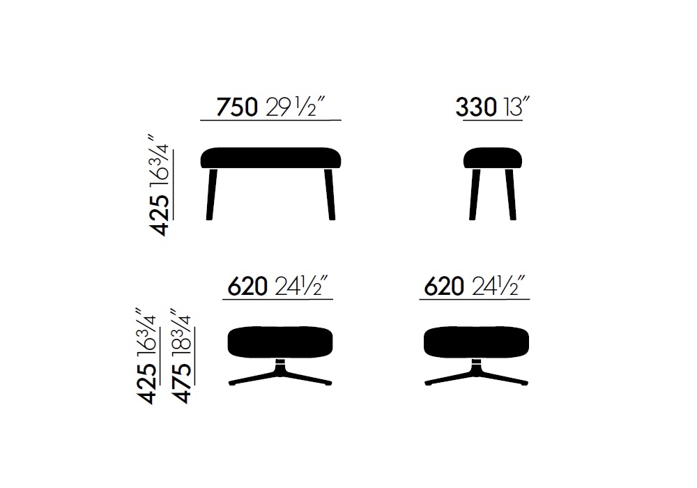 | Dimensions | Ottoman _ 62 x 62 x H 42.5 cm Ottoman _ 62 x 62 x H 47.5 cm Panchina _ 75 x 33 x H 42.5 cm |