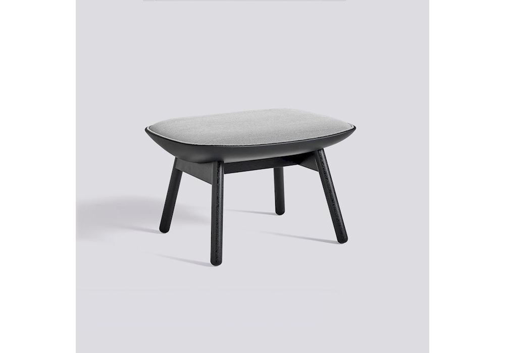 Uchiwa Ottoman conçu par Doshi Levien pour Hay est un repose-piéds composé d'une coque en polypropylène renforcé de mousse de polyuréthane moulée, d'une base en chêne massif laqué à l'eau et d'un revêtement interne et externe en tissu ou cuir. Disponible en différents revêtements.