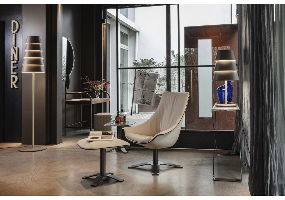 Lullaby conçu par RedCreative pour Enrico Pellizzoni est un pouf avec base peinte et coussin rembourré avec coutures noires et fermeture à glissière. Disponible en différentes finitions.