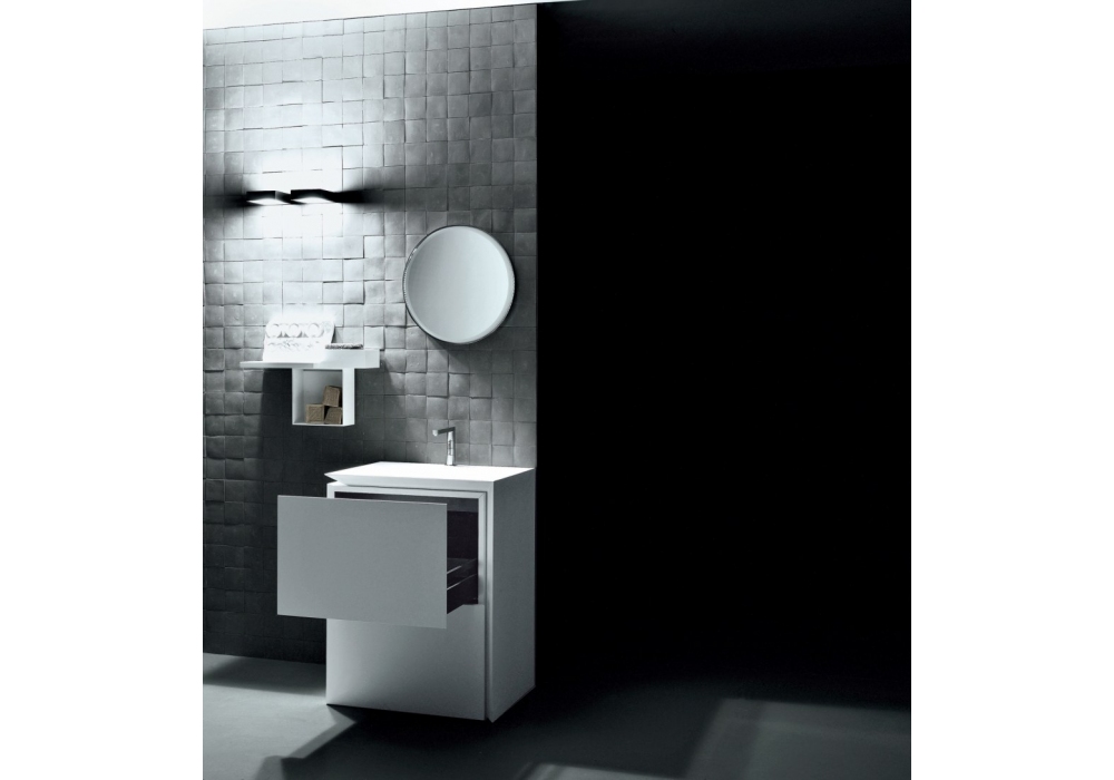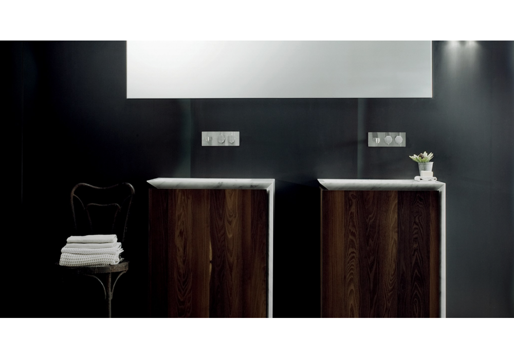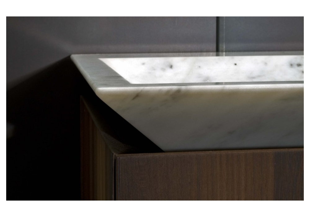 B15 conçu par Robert Wangen est une base monobloc, avec support au sol et double tiroir coulissant. La vasque est intégrée au plan.Le plan avec vasque intégrée peut être réalisé en marbre blanc de Carrare ou noir Marquinia (avec épaulement à droite ou à gauche) ou en Cristalplant® (avec épaulement uniquement à droite). Disponible dans les deux cas l'évier avec siphon peu encombrant. Contactez notre service client pour concevoir votre unité.