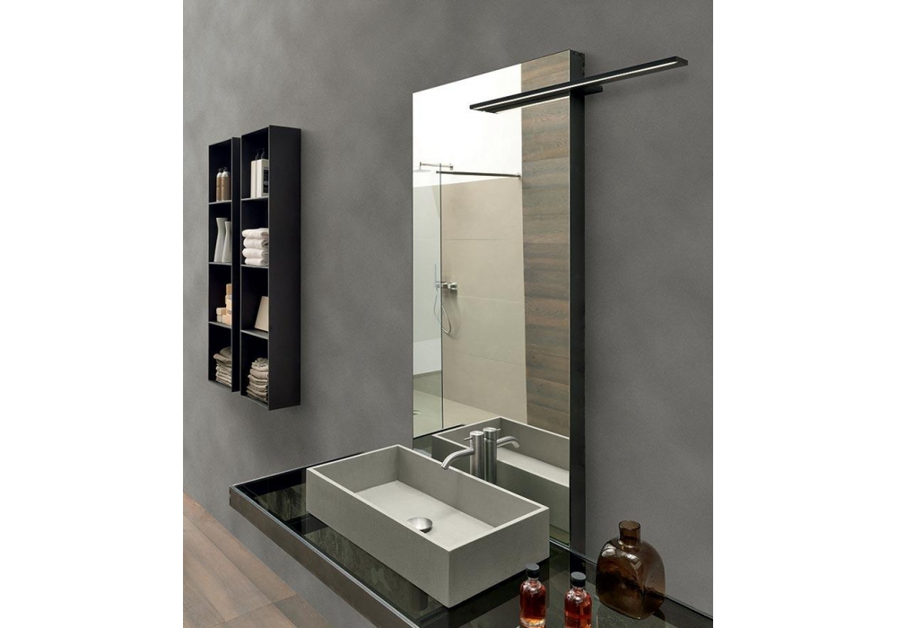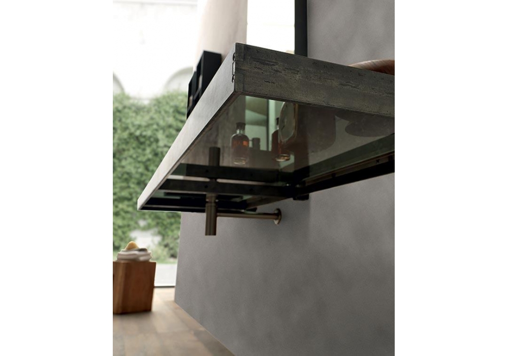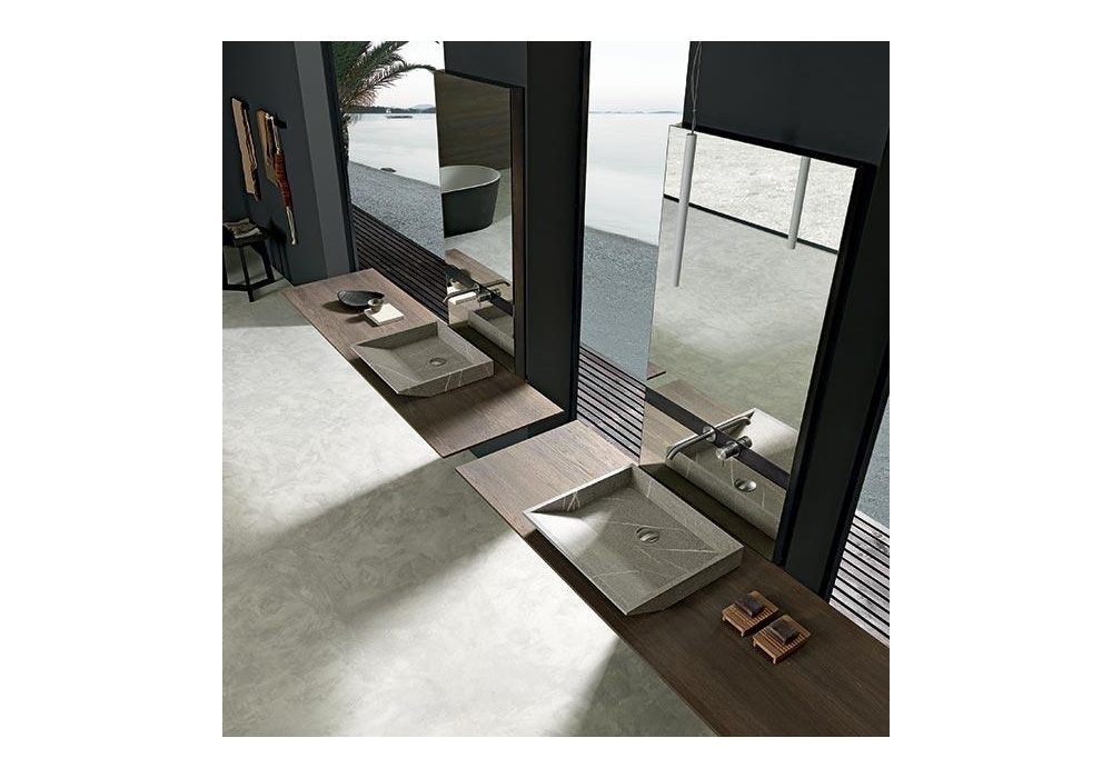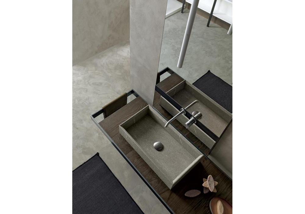 Surf signé et produit par Modulnova est un système de salle de bain avec plan, disponible en différents matériaux et finitions. Le plan est maintenu suspendu par un cadre en fer combiné au lavabo en pierre Piasentina, en grès effet résine ou en d'autres textures matérielles. Le système de salle de bains Surf peut être configuré de différentes manières ; contactez notre Service Clients pour composer le vôtre.