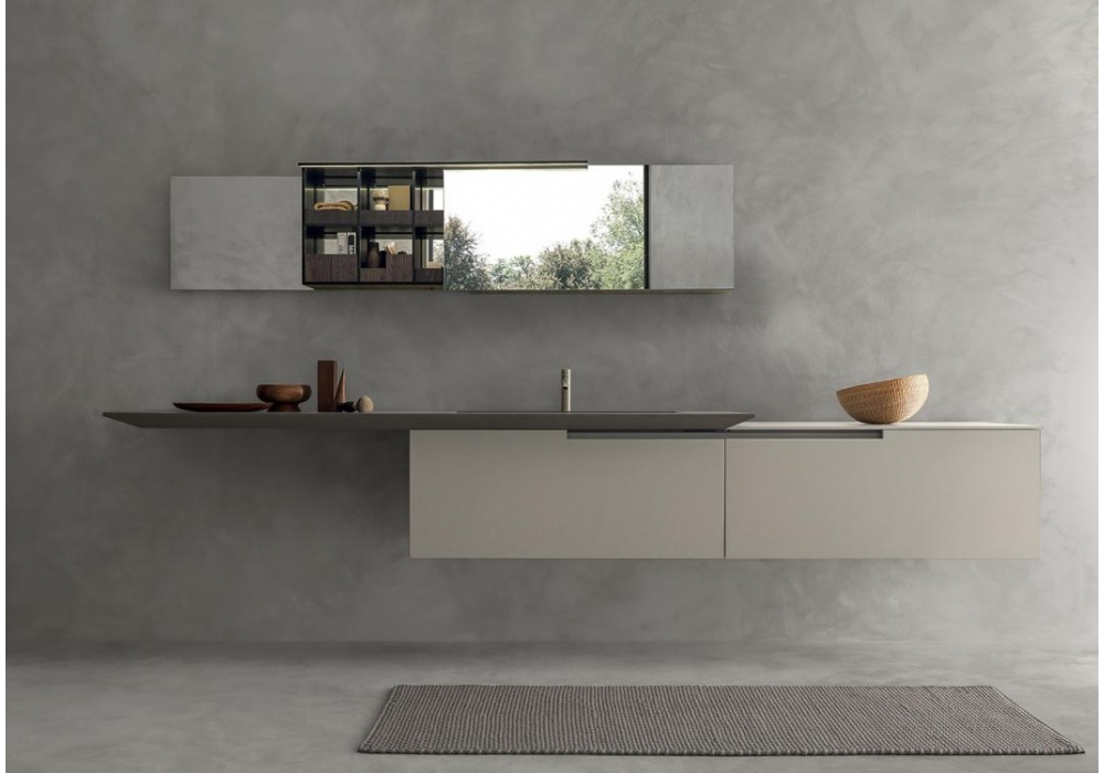 Cross conçu et produit par Modulnova est un système de salle de bain réalisé avec une grande variété de matériaux : grès, chêne, noyer, eucalyptus et bien d'autres. Il est équipé de tiroirs, de paniers et d'éléments coulissants qui rendent chaque meuble de rangement très fonctionnel. Le miroir mural a une structure en aluminium qui coulisse sur des rails escamotables. Le système de salle de bains Cross offre des solutions modulaires adaptées à chaque besoin : contactez notre service client pour le configurer selon vos préférences.
