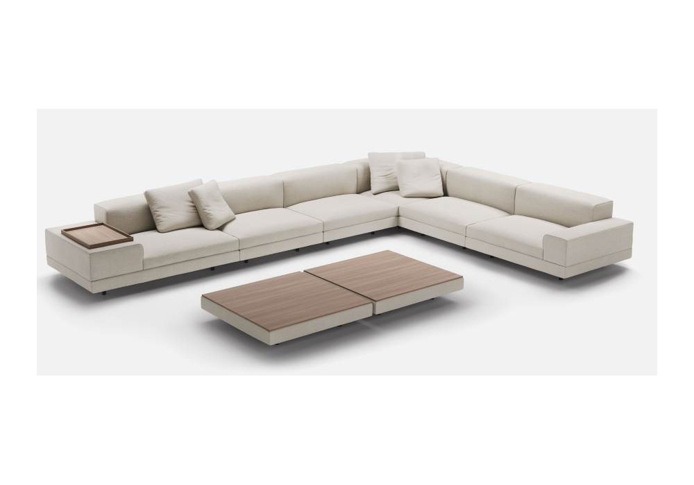 Lorentz conçu par David Lopez Quincoces pour Living Divani est un canapé modulable avec une structure portante en contreplaqué de peuplier, sapin massif en nid d'abeille. La base est dotée d'un panneau sous le siège inséré, peint en noir, avec des pieds en aluminium peint en noir, avec un embout réglable en PVC. Le rembourrage est en polyuréthane expansé recouvert d'une housse en 100% polyéther couplée à un support en velours polyamide thermofixé. Les dossiers, accoudoirs et coussins d'assise sont réalisés avec un rembourrage en mousse de polyuréthane à densités différenciées et un matelas en duvet d'oie lavé et stérilisé enfermé dans des secteurs séparés. Le revêtement est en cuir ou en tissu, déhoussable via zips et velcro.