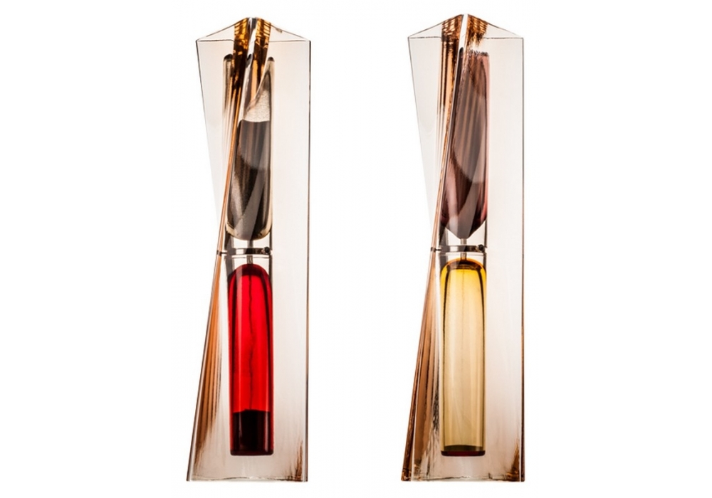 Ando Time conçue par Tadao Ando pour Venini est une sculpture en forme de sablier en verre soufflé, disponible en différentes finitions. Édition limitée à 49 œuvres + 20 P.d.a.