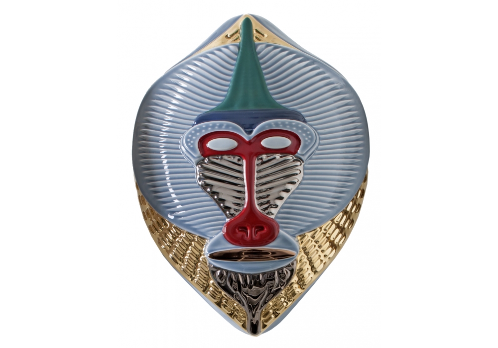 Mandrilllus conçue par Elena Salmistraro pour Bosa est une sculpture murale en céramique émaillée enrichi avec métaux précieux. Mandrillus est l'une des trois sculptures faisant partie de la collection Primates Masks.