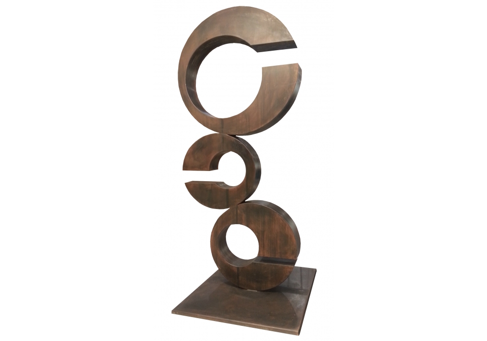 Circle conçu par Faravelli & Guadalupi pour FG Art and Design est une sculpture, symbole de la perfection et emblème de ce qui n'a ni commencement ni fin, représente la vie idéale, la réalité n'est pas toujours comme ça. La sculpture des cercles révèle à quel point la réalité est imprévisible et c'est à nous de transformer la fin en un nouveau départ. Les interruptions soudaines des cercles, métaphores des passages obligatoires de la vie, ajoutent du sens précisément au vide et au manque de matière sans altérer l'équilibre et l'harmonie. Les sculptures sont faites par des artisans et sont complétées par des cires et des huiles de protection spéciales, ce qui les rend adaptées aux espaces intérieurs et extérieurs.