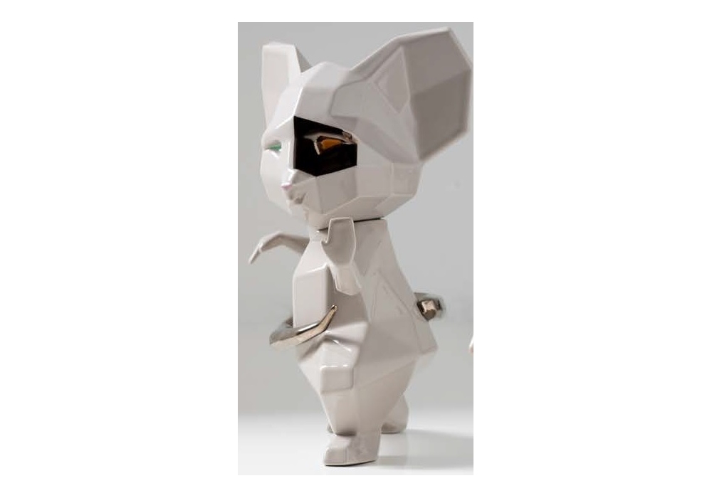 M. Ciao conçu par Vittorio Gennari pour Bosa est une sculpture en céramique dans différentes finitions d'émaux de couleur brillante ou mate et détails en métal précieux brillant ou mat.