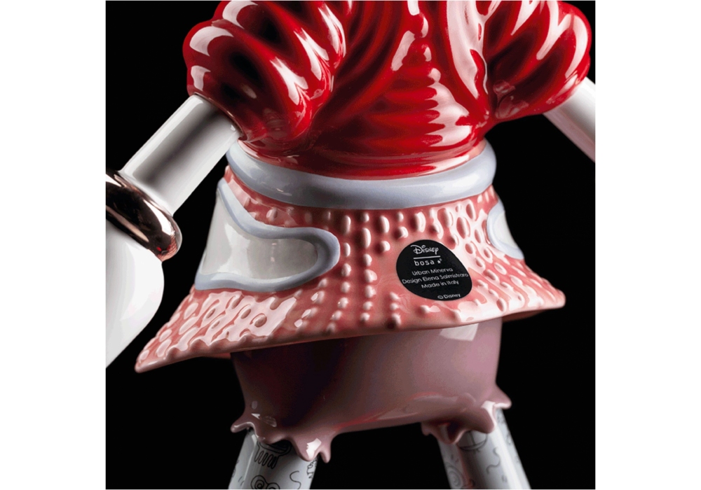 Urban Minerva conçue par Elena Salmistraro pour Bosa est une sculpture en céramique, avec des décorations multicolores faites à la main. La sculpture est née d'une collaboration entre Bosa et Disney et réinterprète le style de Minnie, dans une touche moderne et métropolitaine.