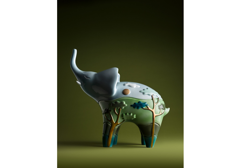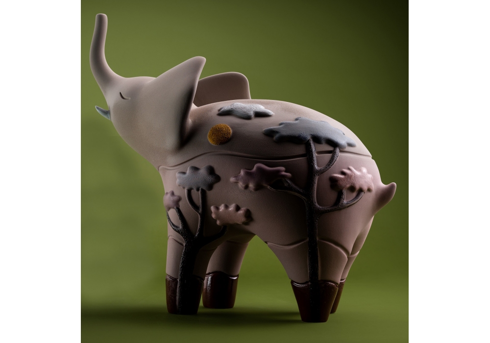 Surus Elephant conçu par Alessandra Baldereschi pour Bosa est une sculpture avec décorations, disponible en différentes finitions.