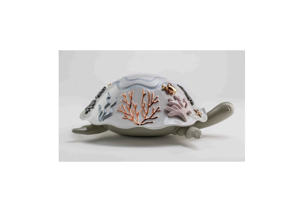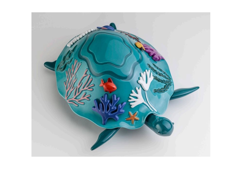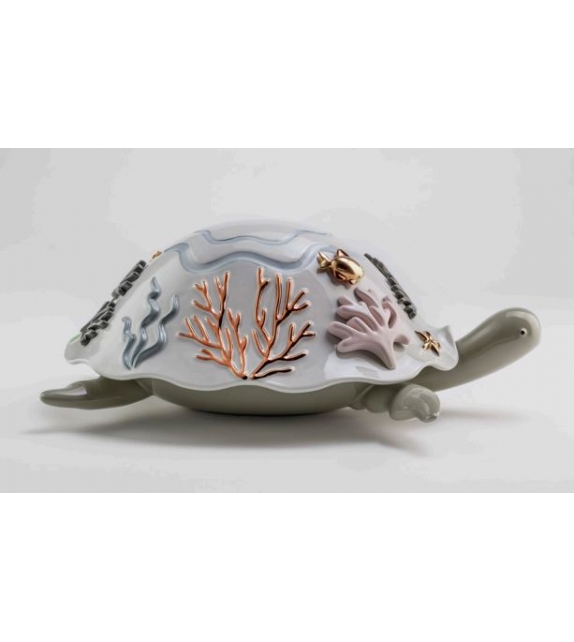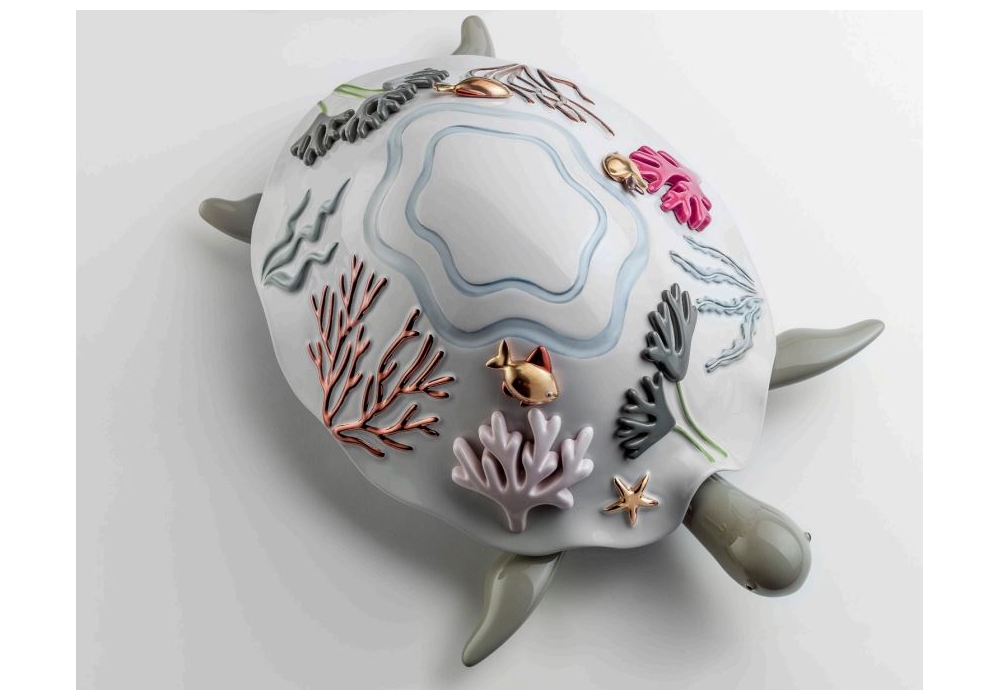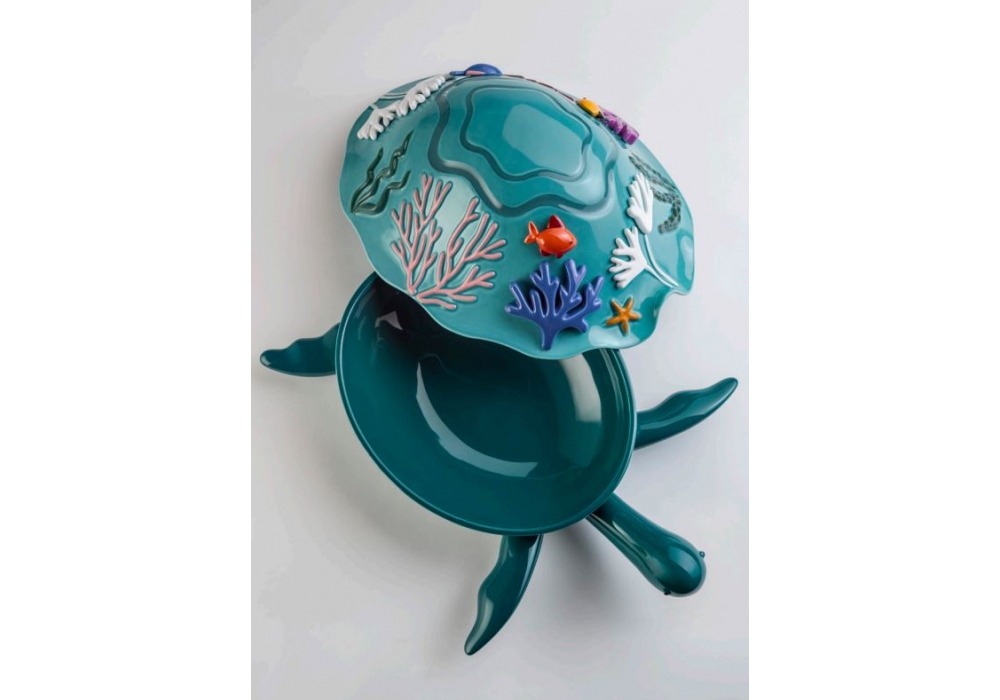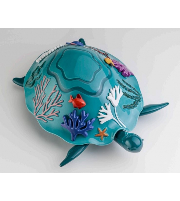 Margot Tortue conçue par Alessandra Baldereschi pour Bosa est une sculpture en céramique enrichi en métaux précieux et glaçages colorés.
