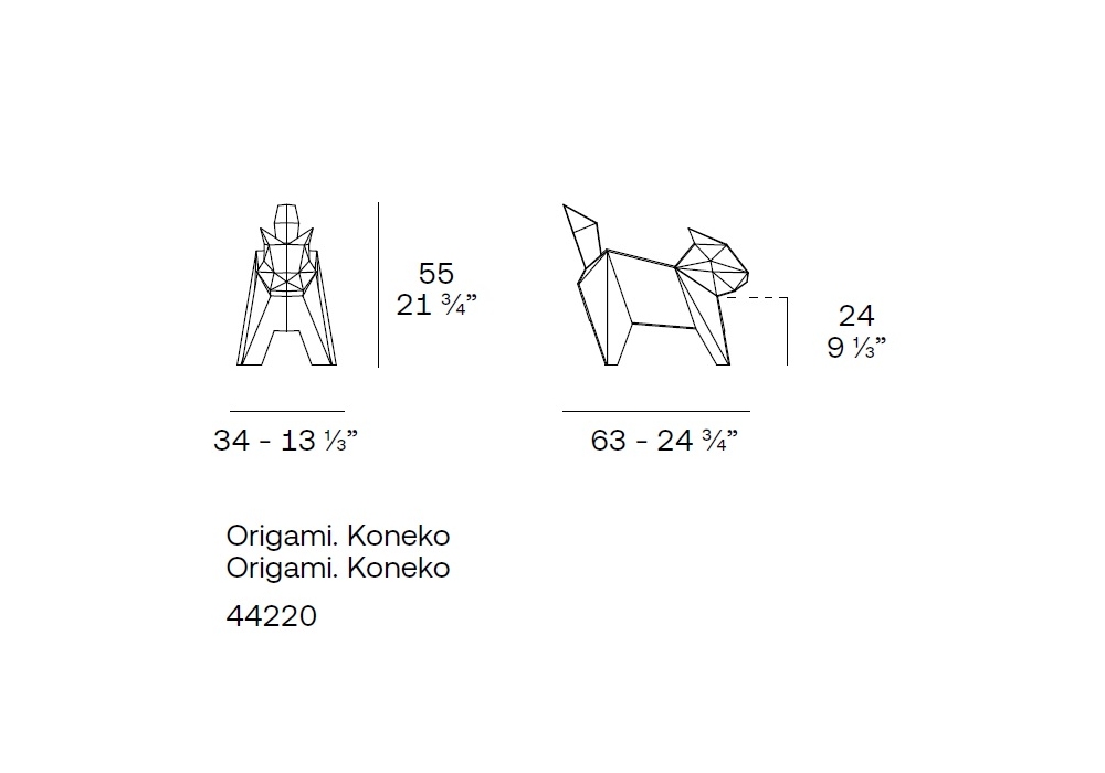 Origami Koneko conçue par Studio Vondom est une sculpture réalisée en polyéthylène avec une finition mate ou laquée ou avec un éclairage interne à LED. Disponible en différentes finitions.