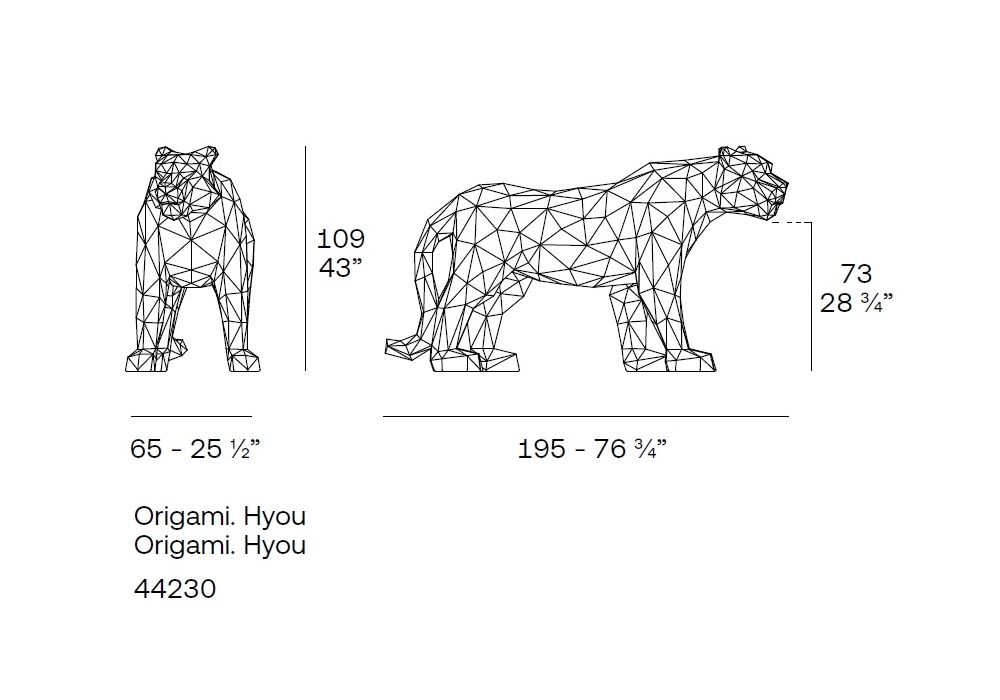 Origami Hyou conçue par Studio Vondom est une sculpture réalisée en polyéthylène avec une finition mate ou laquée ou avec un éclairage interne à LED. Disponible en différentes finitions.
