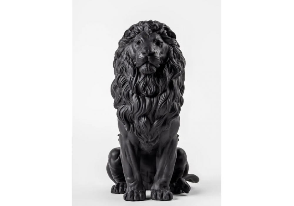 Majestic Lion signé par Raul Rubio pour Lladró est une sculpture en porcelaine noire mate.