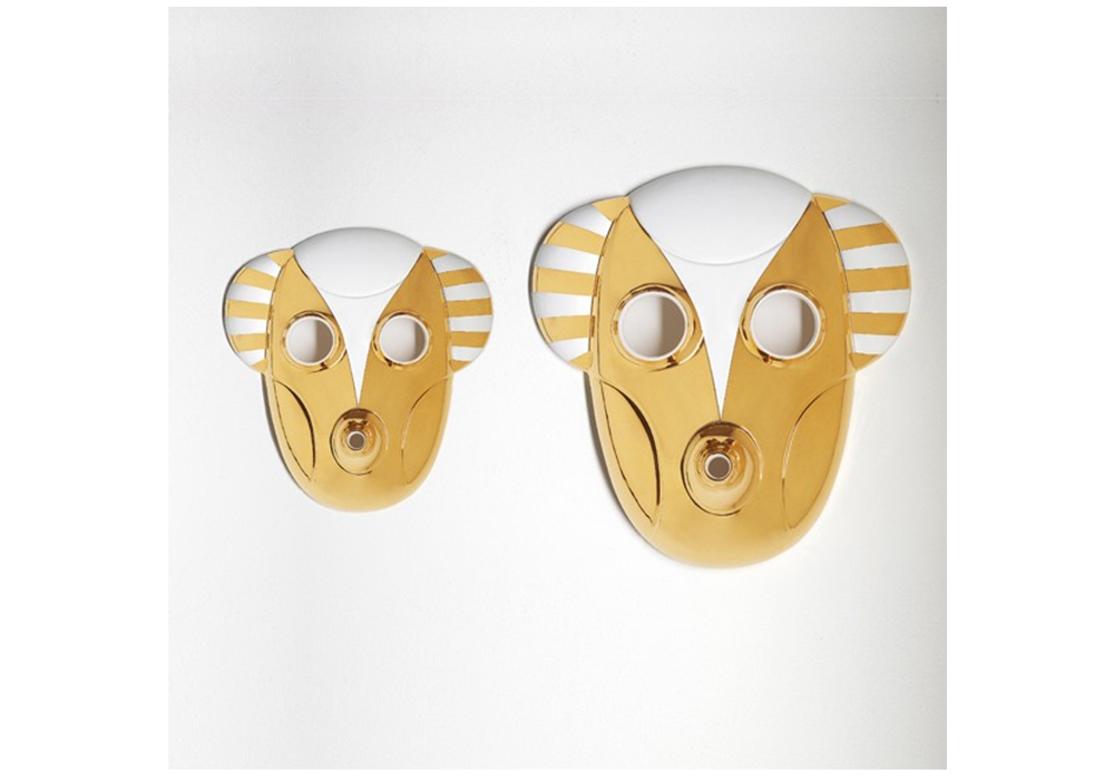 Maskhayon Singe conçue par Jaime Hayon pour Bosa est une sculpture en céramique enrichi en métaux précieux et glaçages colorés, avec une forme de masque, qui fait partie de la collection Maskhayon représentant la fusion des personnages animaux et imaginaires. Ils ont formes attrayantes, objets d'art pour décorer notre environnement et qui rappelle les tribus africaines, leur imagination et leur magie. Disponible en 2 dimensions différentes.