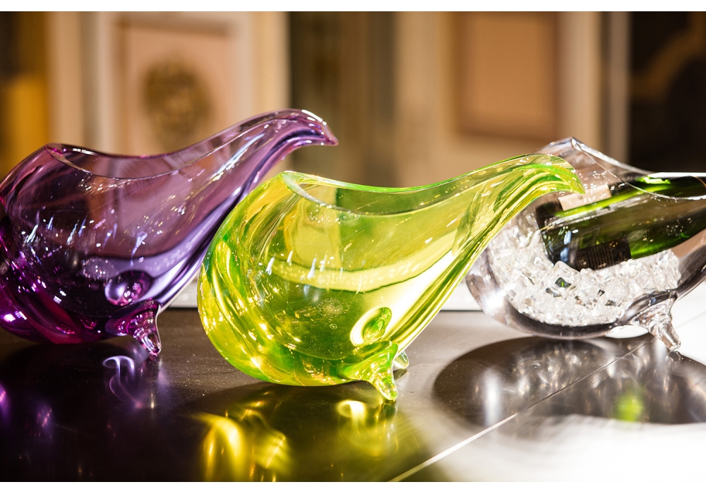 Champagne Cooler conçu par Jan Kaplický pour Lasvit est un seau à glace réalisée en verre. Il est disponible in diffèrentes finitions. En uranium et alexandrit finitions est edition limitée.