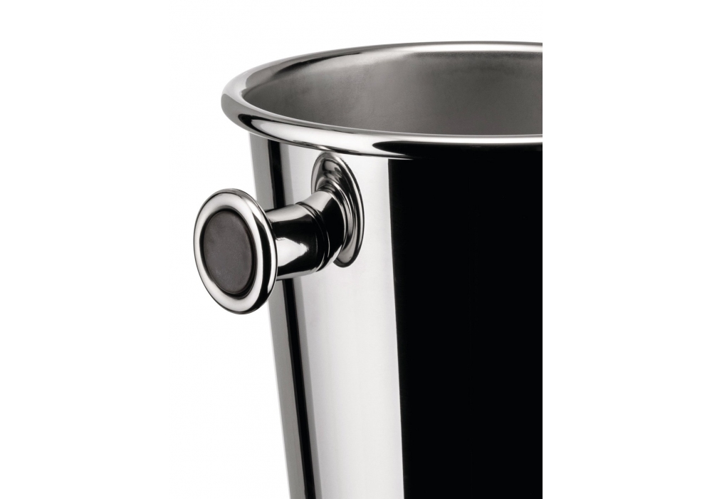 5051 conçu par Ettore Sottsass pour Alessi est un seau à glace avec poignées et grille en acier inoxydable 18/10 avec un extérieur poli miroir et un intérieur mat.