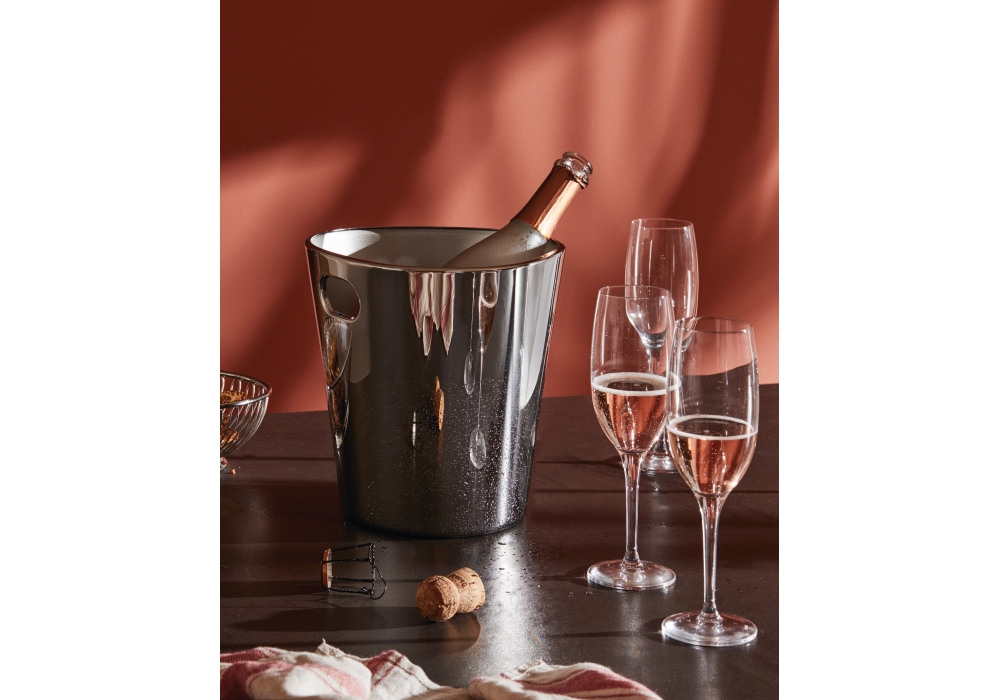 Bolly conçu par Jasper Morrison pour Alessi est un seau à champagne en acier inoxydable 18/10.