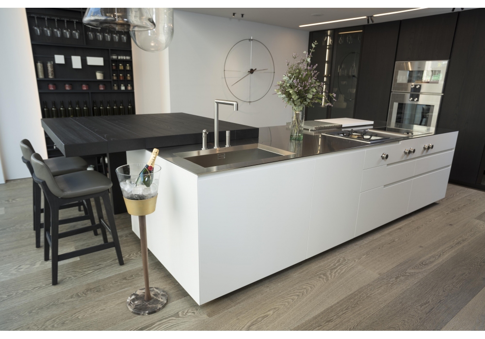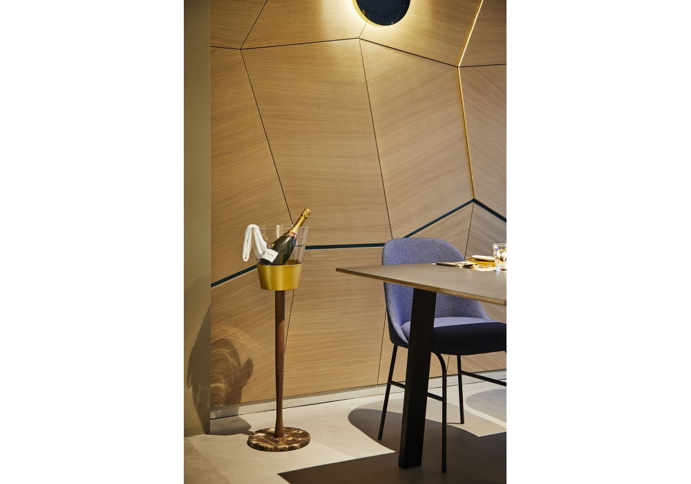 Champagnera conçu par Andrés Martinez pour Nomon est un meuble bar avec structure en noyer naturel ou avec finition en frêne noir, plateau en marbre en différentes finitions.