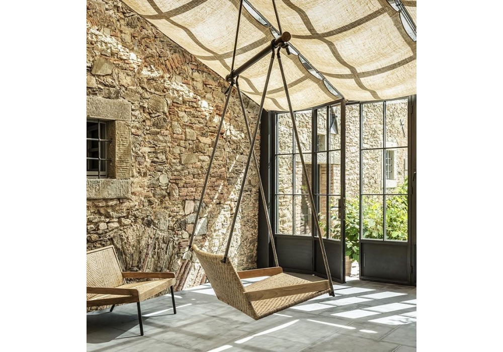 Allaperto Veranda conçu par Matteo Thun, Antonio Rodriguez pour Ethimo est un siège suspendu structuré en bois de teck et métal avec revêtement en rattan. Allaperto Veranda est également disponible avec des coussins de différentes finitions.