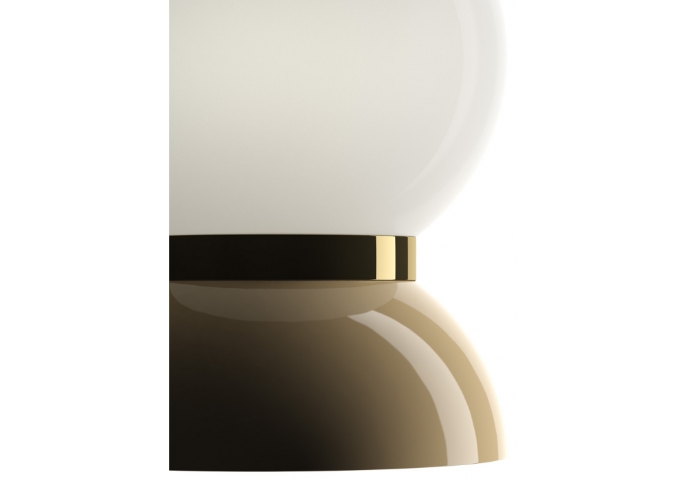 Saint Louis designed by Jaime Hayon for Ceccotti Collezioni is a ceiling lamp with structure in brass, globe in white glass and shade in ceramic available in various colours (white, grey, black, ivory, yellow, olive green, green, blue, purple, lilac.)