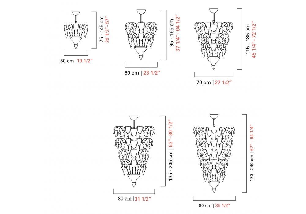 | Dimensions | 50 x H 75 cm; 60 x H 95 cm; 70 x H 115 cm; 80 x H 135 cm; 90 x H 170 cm. |