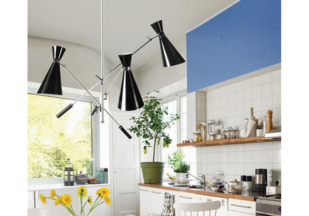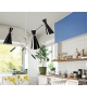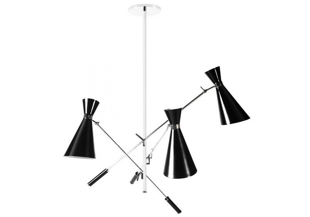 Stanley conçue par DelightFULL est une lampe à suspension faite à la main en laiton et aluminium, avec une finition nickelée sur le corps et une laque noire brillante à l'extérieur des abat-jour. L'intérieur est laqué blanc mat.