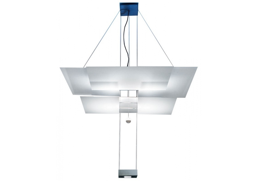 Oh Mei Ma Kabir Weiss est une suspension signé par Ingo Maurer. Métal, verre. Six feuilles en tôle d'aluminium, laquées blanc mat. Longueur spéciale 700 cm sur demande. Dimmable, livré avec LED intégrés.