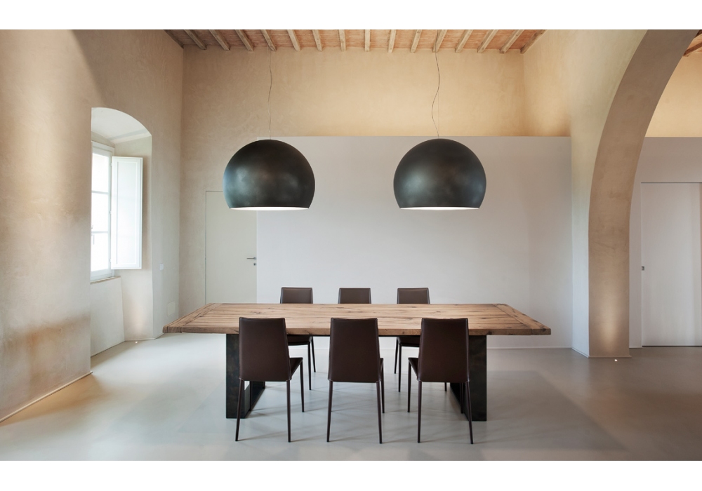 LAlampada conçue par Lapo Ciatti pour Opinion Ciatti est une suspension sphérique réalisée avec un diffuseur en aluminium ou en acier. Disponible en différentes finitions et dimensions.