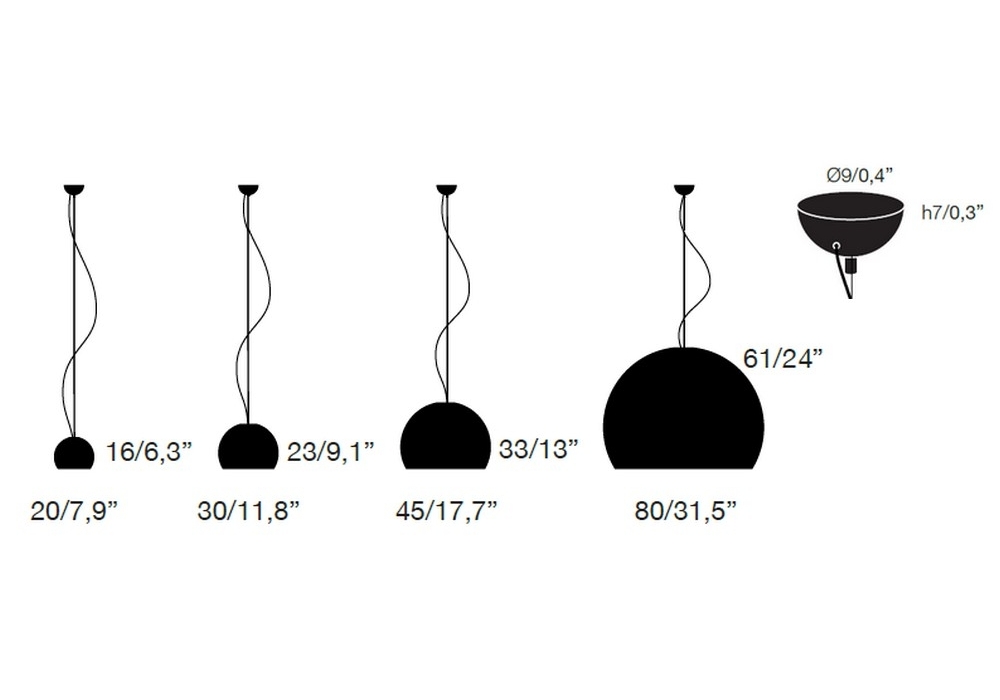 | Source lumineuse | E14 (Ø 20 cm); E27 (Ø 30, Ø 45, Ø 80 cm) |