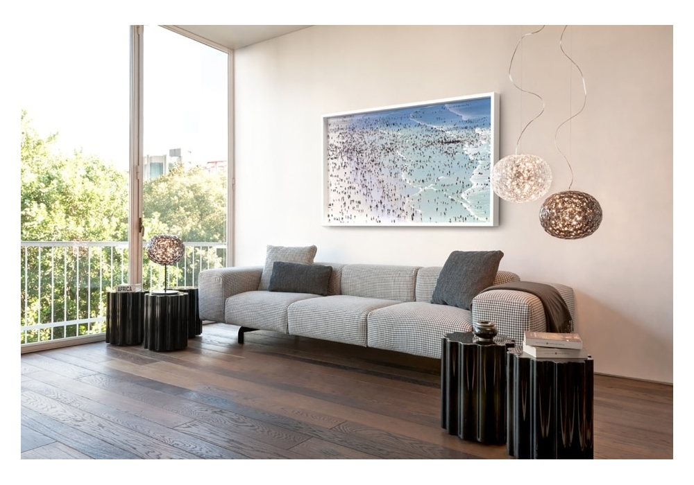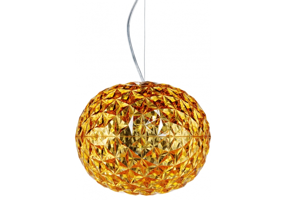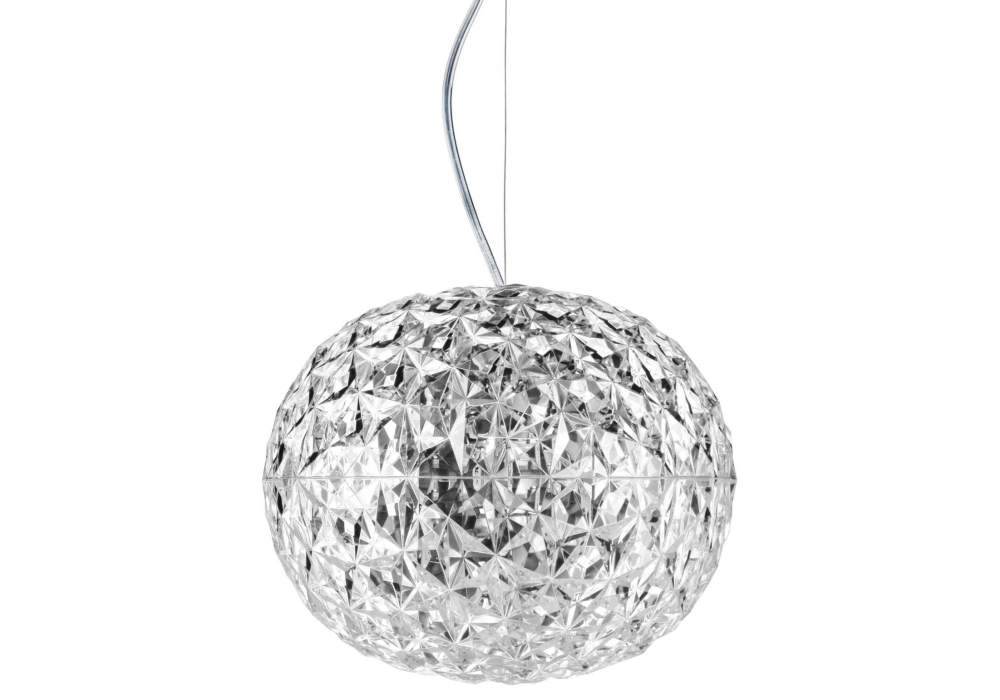 Planet conçue par Tokujin Yoshioka pour Kartell est une suspension en technopolymère thermoplastique transparent ou teinté dans la masse. Structure en aluminium moulé sous pression poli.