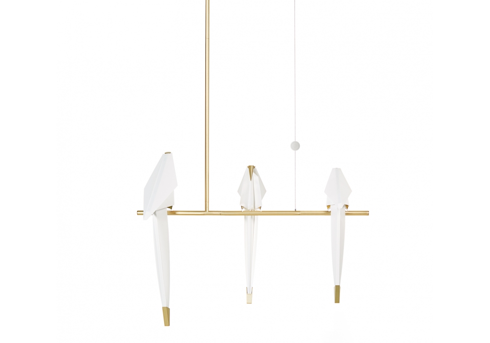 Perch Light Branch conçue par Umut Yamac pour Moooi est une lampe à suspension LED avec structure en acier et aluminium avec diffuseur en polycarbonate et papier synthétique.