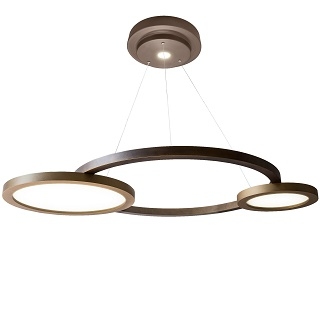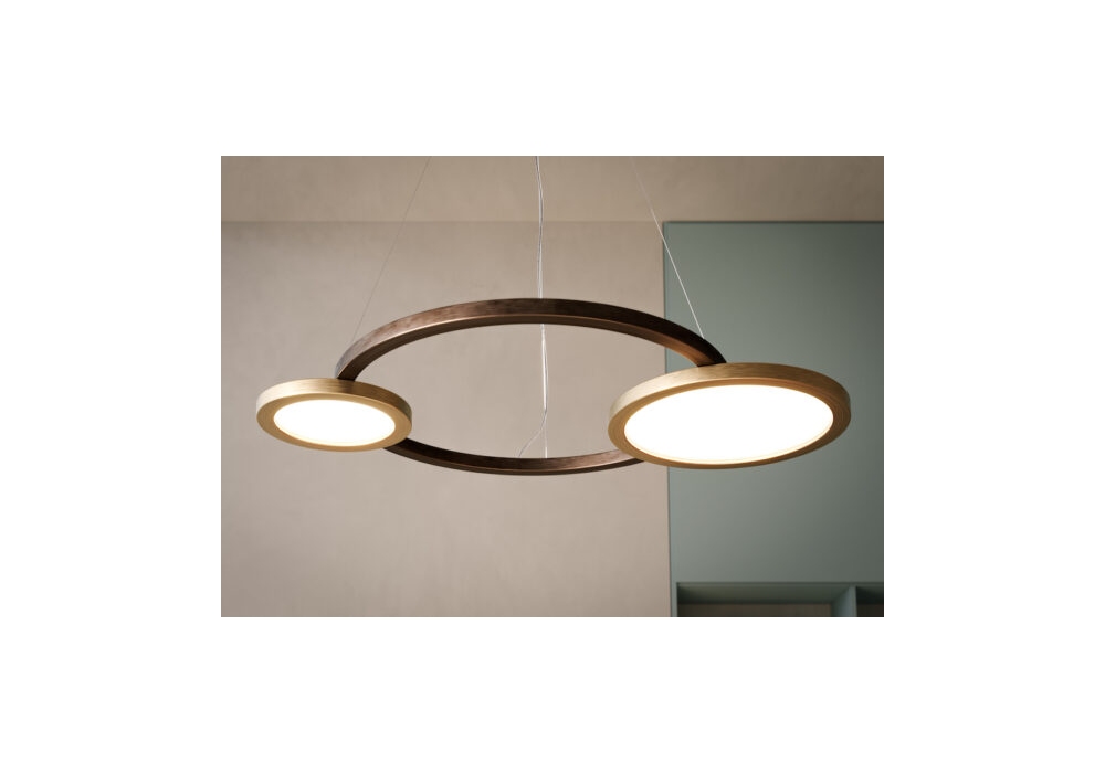 Eclisse 2.0 conçue par Massimiliano Raggi pour Contardi est une lampe à suspension structurée par trois diffuseurs circulaires de diamètres différents en bois bronze clair et bronze foncé. Les diffuseurs sont en alicrite effet albâtre et protègent les sources lumineuses LED. Eclisse 2.0 est également disponible en différentes versions dimmables.