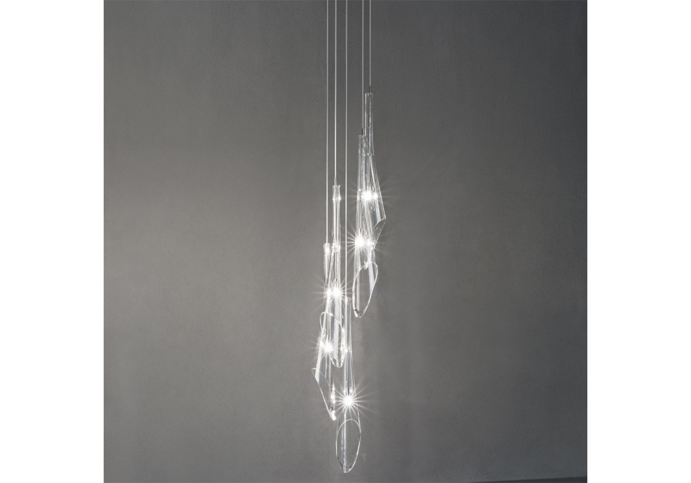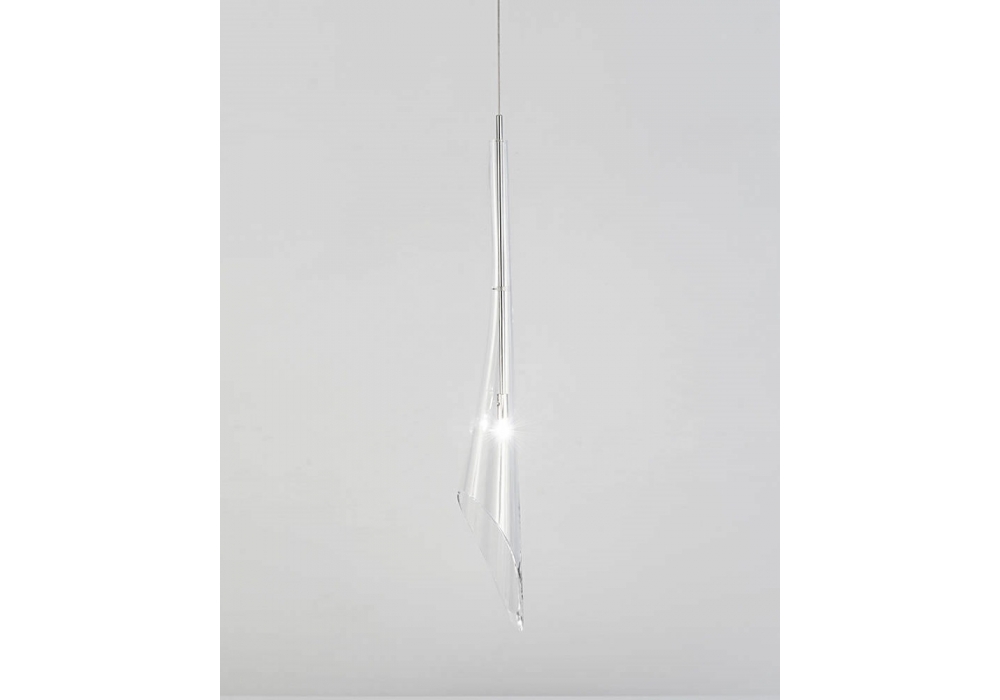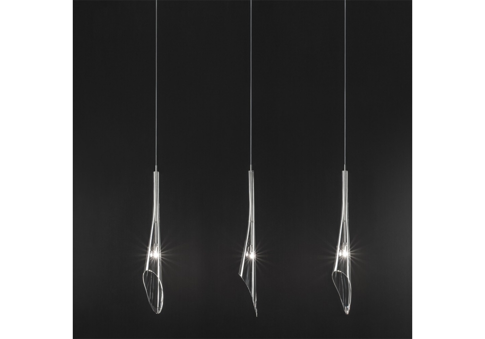 Calle conçue par Luca Martorano & Mattia Albicini pour Terzani est une lampe à suspension avec structure portante en métal et diffuseur en cristal transparent très fin. La source lumineuse utilisée est LED ou halogène dimmable dans différentes versions. Calle est disponible en différents modèles.