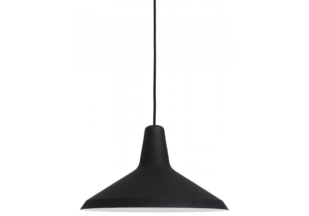 G-10 conçue par Greta M. Grossman pour Gubi est une suspension avec diffuseur en métal enduit et câble en tissu noir. Ampoule non incluse.