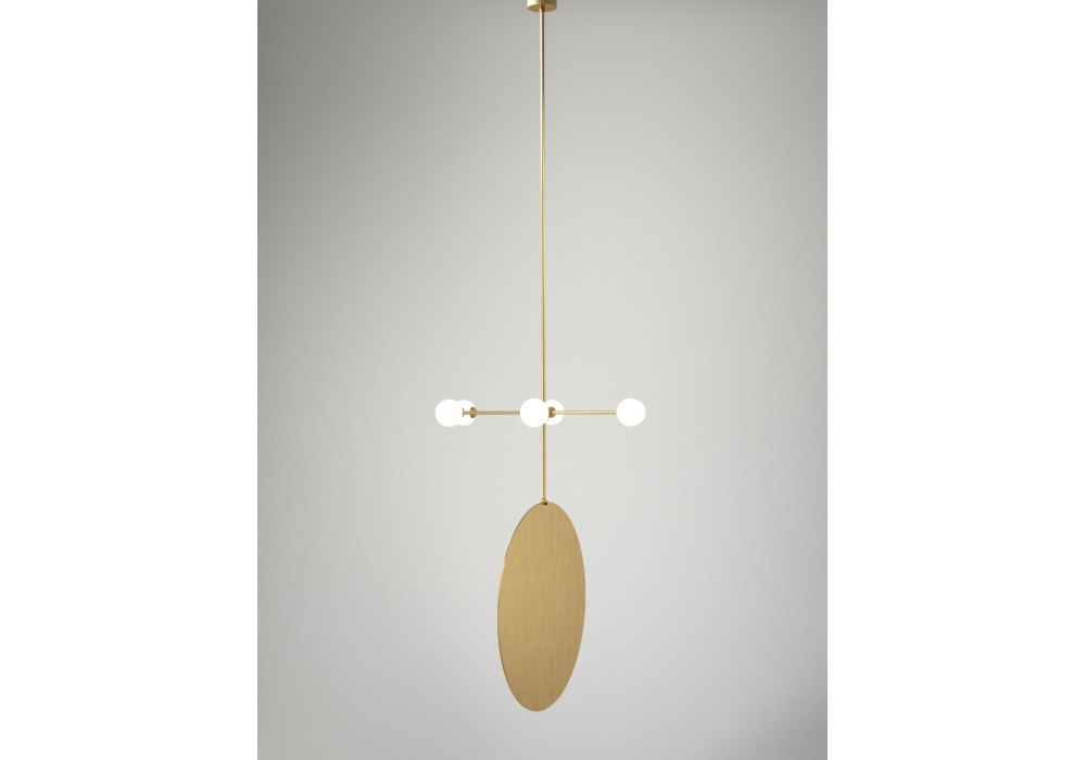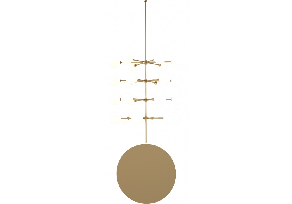 Epic Three conçue par Atelier Areti est une lampe à suspension caractérisée par une structure en métal peint ou bronze, des abat-jour en verre en forme de sphère. Le disque en laiton peut être remplacé par une sphère en verre. Disponible en différentes finitions et modèles.